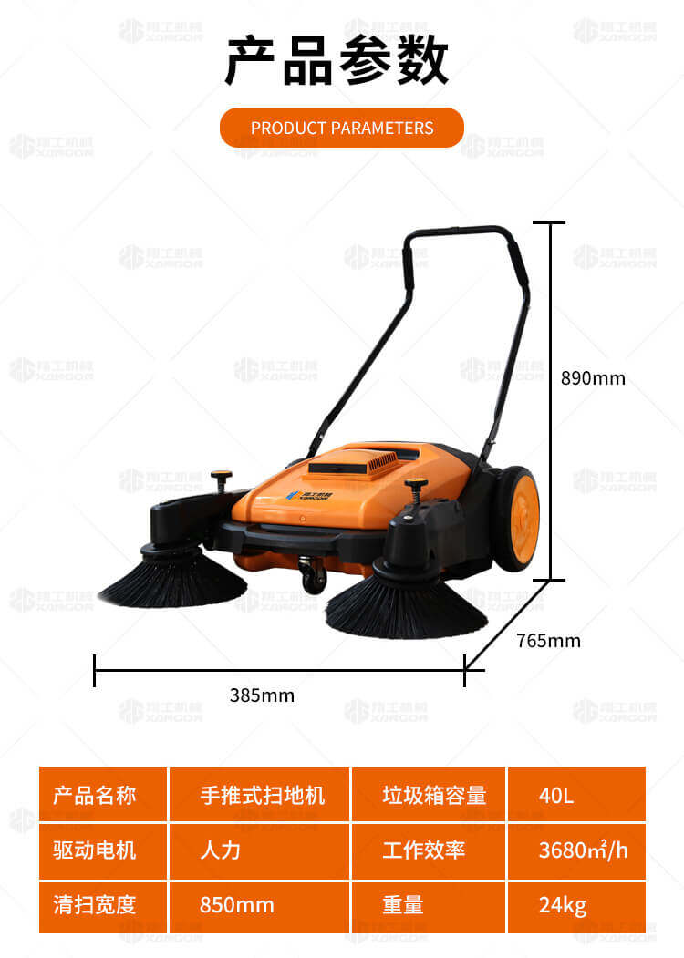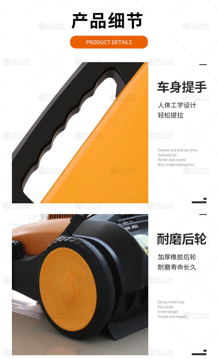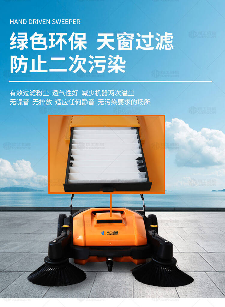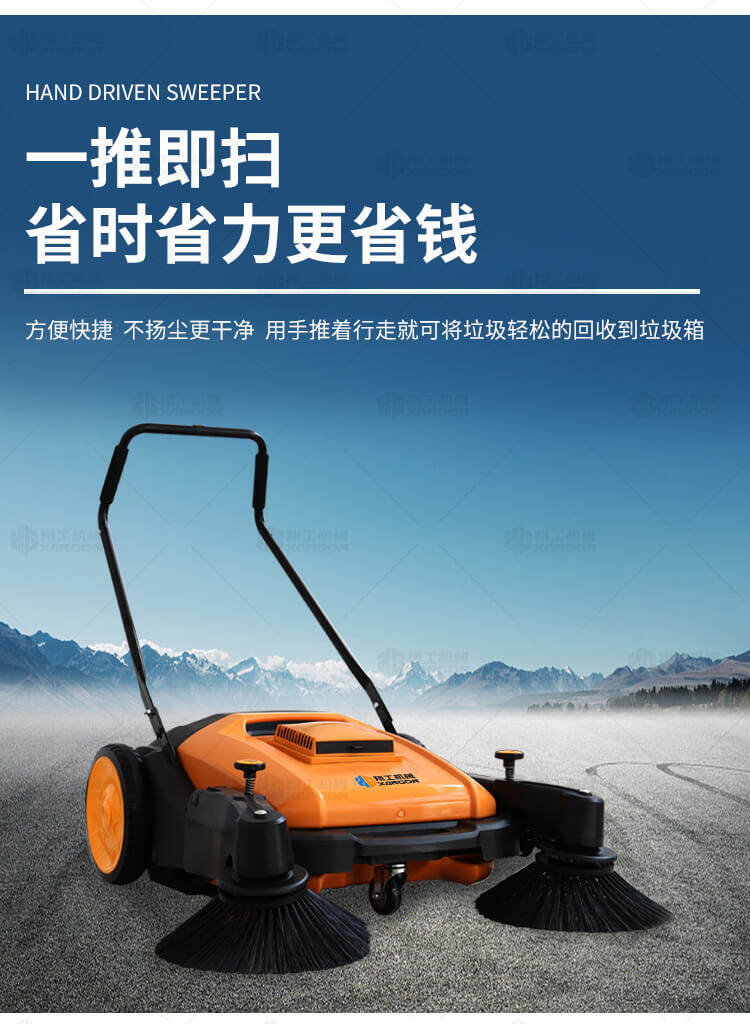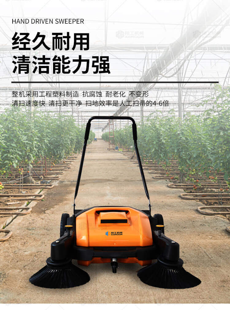 手推式掃地機能清潔房屋周邊范圍:包括小路,公路,車(chē)道和院子,能比用普通的掃把和簸箕節省5倍的時(shí)間,清掃時(shí)垃圾被迅速的收集到塵箱,簡(jiǎn)單、快速、干凈。